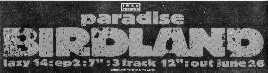 More shows follow through May to July where the band cement their reputation as one of the country's most exciting live draws. A session for John Peel's Radio 1 show was broadcast in June. They perform both sides of their second single alongside 'Sugar Blood' and a cover of Television's 'See No Evil' - the only studio recording of the track so far surfaced. The release of 'Paradise' is unenthusiastically received by the Melody Maker ("When Birdland get round to writing a decent song, they might make a third-rate Buzzcocks, but don't call me. The next person who tells me I should see them live gets it in the ear.") but it hits the top of the independent charts in a top five that includes Pixies, James, Stone Roses and De La Soul. In reality it was an excellent follow up, showcasing the band's ability to create spiky blasts of three-minute New Wave. The flip side, 'White' is perhaps the most violent song in the band's catalogue whilst 'Rage' successfully marries acoustic verses with a typical thrashy chorus.